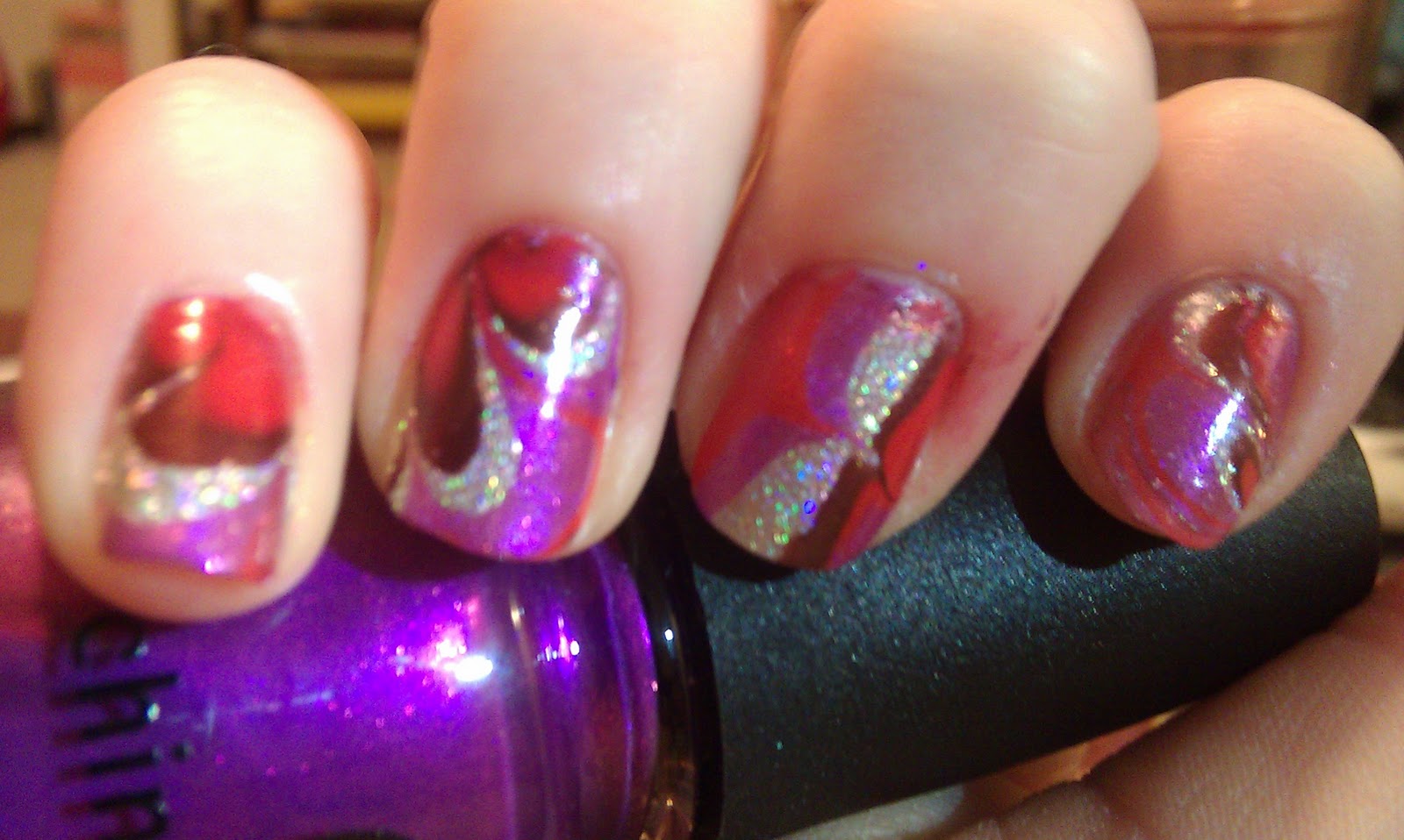 Today I decided to post pics of a water marble I did a while back. This color combo is every "enchanted" hence the name in the tutorial I made. Watch the video on  youtube of how I made this design.
